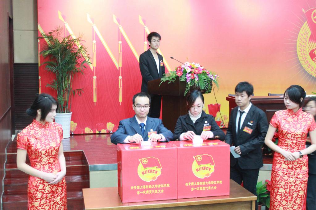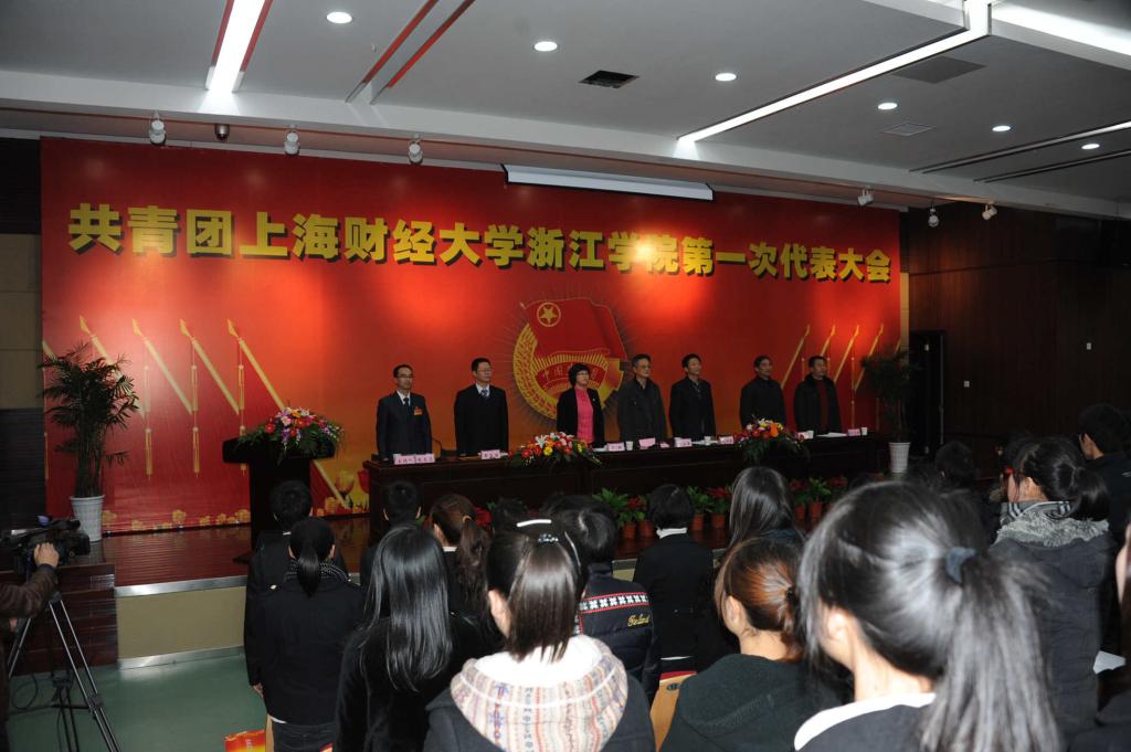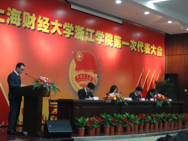 2014年12月29日下午,承载全院2000余名团员青年重托的共青团上海财经大学浙江学院第一次代表大会在学院图书信息中心报告厅隆重召开。上海财经大学党委副书记刘永章、学工部长冯润民,共青团金华市委书记蔡艳,上海财经大学浙江学院院长陈晓、党委副书记章益国、副院长叶志林等出席会议。团市委学少部领导、市直各学校团委书记到会祝贺。