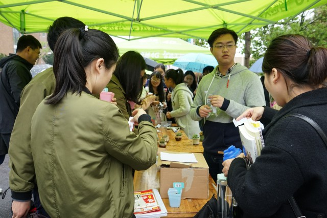 活动游戏区,会计系尽心尽力,用“答题领绿植”的游戏吸引同学们积极参与活动,使同学们在获得植物的同时也增长不少环保知识。