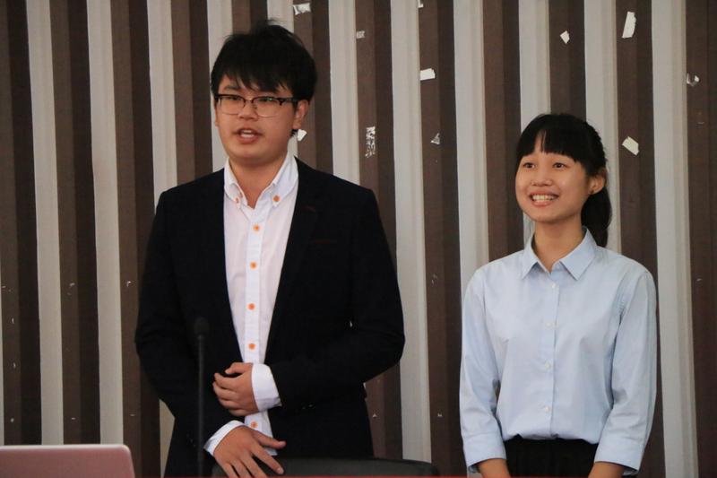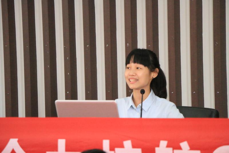 我系暑期实践队成员代表施卓航上台发表演讲。他向到场评委们讲述了我们在为期13天的实践中重点举办的三大主题活动、完成情况以及取得的相关成绩。张队长与施同学激情澎湃的演讲,搭配上我们精心准备的PPT放映,让评委们眼前一亮。