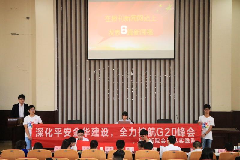 “全面护航G20,平安志愿我先行。”2016年7月,会计系暑期社会实践队将这个口号喊遍了金东区大大小小的角落,今天,这个口号又一次在我院暑期社会实践评选大赛上响起。